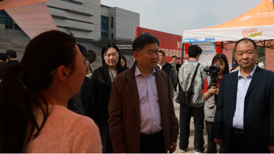 永利yl23411集团官网党委书记王孝俊,副校长赵伟杰、高雪霞等视察招聘会现场,详细询问会议筹备和组织工作。校领导在招聘会现场与招聘单位交流调研,在装备制造专区,王孝俊与新乡市北方液压传动有限公司、河南景链金刚石有限公司、豫北转向系统股份有限公司等用人单位交流,了解企业生产经营和岗位供给、人才要求,提议企业以校园招聘为契机,开展多方位的校企合作。调研结束时,王孝俊与现场各学院负责人谈话,要求各学院要借助招聘会时机,邀请企业到学院深入交流,把企业资源引进来,开展更全面、更深层次的校企合作。