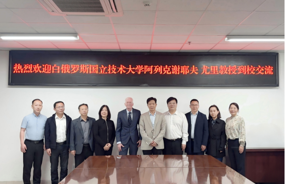 杨钧对阿列克谢耶夫·尤里教授的到来表示热烈欢迎,简要介绍了学校的办学历史,并重点阐述了我校的特色学科专业及人才引进政策。他表示,希望以共建“一带一路”倡议为契机,围绕学校硕士点建设,与白俄罗斯高校开展高层次人才和高水平团队引进及国际间科研合作等工作。