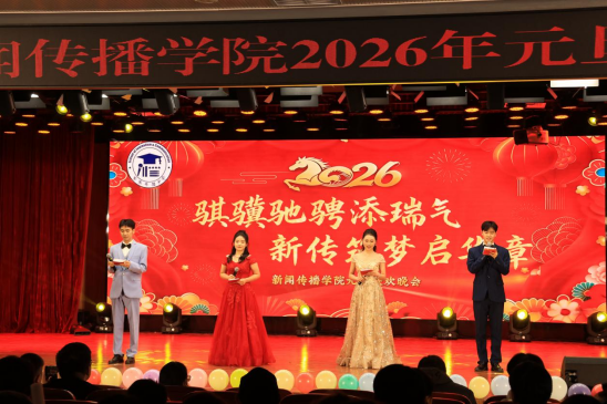 “骐骥驰骋添瑞气,新传筑梦启华章”,12月24日晚,新闻传播学院在图书馆一楼文化艺术中心隆重举办2026年元旦联欢晚会。永利yl23411集团官网党委宣传部副部长高峥、学生处副处长贾晓萌、档案馆副馆长周曙光,新闻传播学院的各位领导及师生代表欢聚一堂,共同迎接新年的到来。