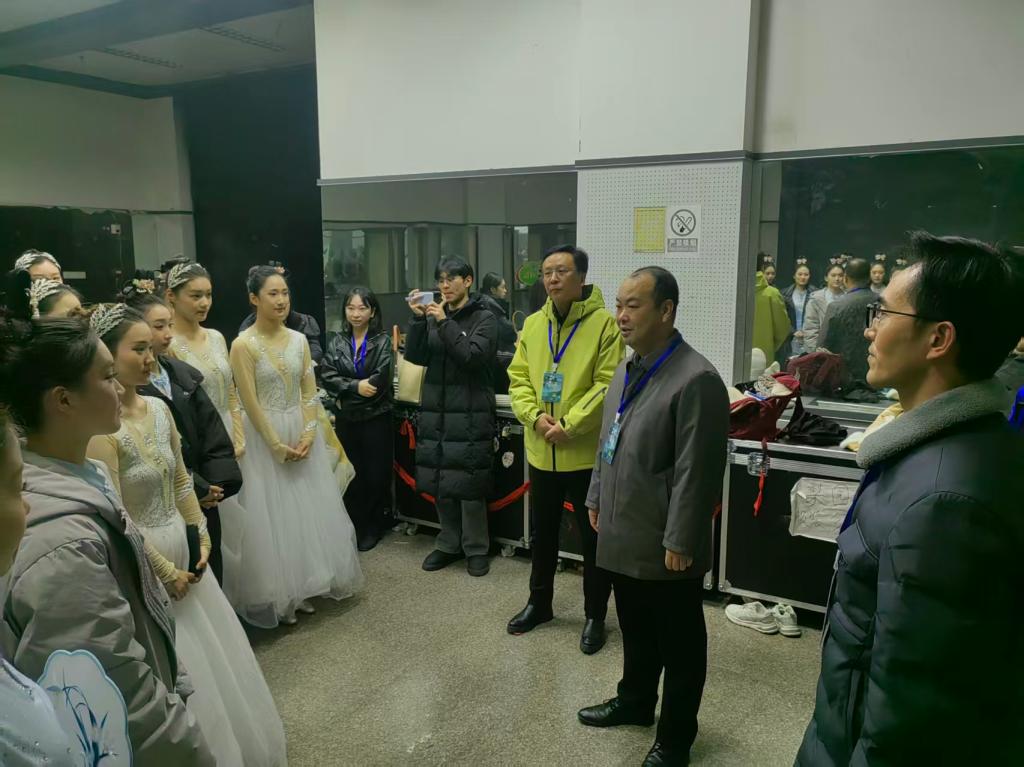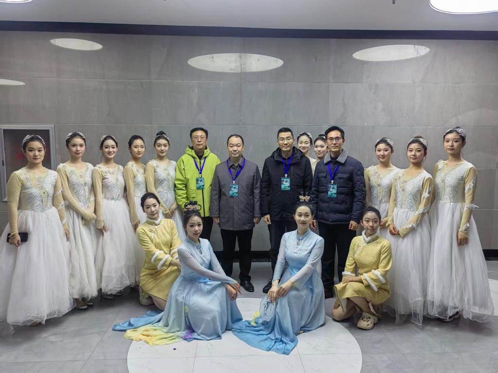 在接到演出邀请之后,音乐学院高度重视,选拔思想政治坚定、业务水平优良、协作能力突出的四十名同学,利用业余时间完成了六个节目的排练工作,为现场录制的顺利进行打下了坚实基础。在晚会录制期间,副校长赵伟杰还专门带领教务处副处长李军伟及音乐学院负责同志到现场看望演职人员,并送去了校党委、行政对同学们的问候。赵伟杰勉励大家一要珍惜机会,用最好的状态完成演出任务;二要展现形象,用最美的状态传递新院精神;三要发奋努力,用最稳的状态继续投身社会实践。