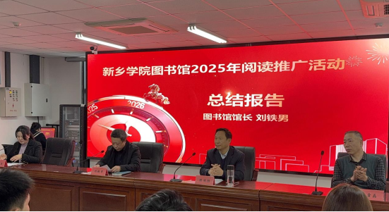刘铁男作了2025年度阅读推广工作总结报告。他谈到,2025年图书馆在学校党委、行政统筹部署下,坚守“读者第一、服务育人”宗旨,联合校内多部门及学生社团,成功打造了一系列兼具思想性、知识性与趣味性的阅读品牌活动。全年累计举办各类阅读主题活动40余场,吸引2万余人次师生参与,其中,4月第十届“书海逐光青春领航”读书节与11-12月“卷藏风雅新院共读”全民阅读月两大品牌系列活动亮点纷呈,点燃了师生阅读热情。数据显示,2025年图书馆接待入馆师生130万余人次,纸质图书借阅量达3万余册,校园内“人人爱读书、处处有书香、时时享阅读”的良好氛围已然形成。