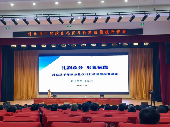 3月10日,受封丘县委组织部邀请,管理学院教师王海利为封丘县科级以上干部作“礼润政务 形象赋能”政务礼仪与行政效能提升专题讲座。封丘县委组织部部长张春燕主持,我校驻封丘县边庄村第一书记秦昆列席,全县约600名科级以上干部参加培训。