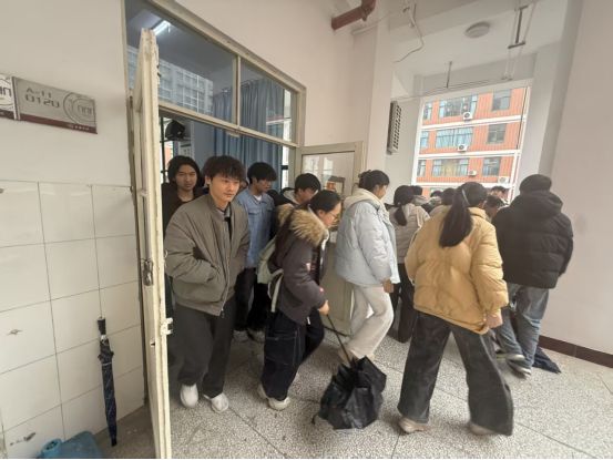 14:30学院组织学生开展专题消防讲座,重点围绕实验室火灾预防、危化品规范操作、报警流程及灭火器材实操使用等核心内容展开讲解;讲座结束后同步启动应急疏散演练,全体学生在辅导员引导下,严格按照既定预案沿指定路线有序撤离至操场集结点,整个过程紧张有序、高效规范。