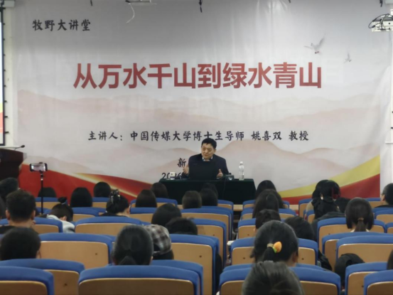 为纪念红军长征90周年,传承红色经典文化,提升新乡市中小学教师和我校师生的爱国情怀和诗词文化素养,3月31日下午,中国传媒大学博士生导师姚喜双教授莅临我校,在A5号楼报告厅作了题为《从万水千山到绿水青山》的专题讲座。新乡市各中小学教师代表、人文学院师生等200余人聆听了讲座。讲座由永利yl23411集团官网党委委员、副校长杨钧教授主持。