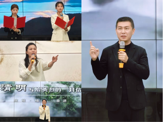 现场以清雅的春日布景,营造出沉浸式诗意氛围,整场活动紧扣清明时节“追思怀远、礼赞春光、砥砺前行”的文化内核,分为春风十里沐芳华、春心追思寄流年、春山可望花正好三个篇章,10个精品节目轮番上演,用声音传递文化温度,用诗意点亮校园春光。