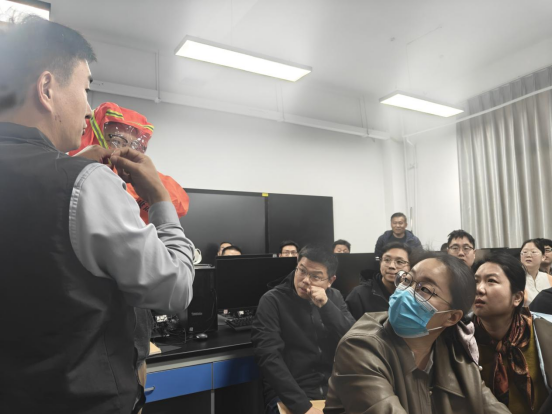 培训环节,学院邀请河南省消防协会李强教官,分成教师专场和学生专场分别现场授课。李强结合高校实验室火灾案例,重点讲解了电气故障、违规操作等常见火情诱因。李强还围绕灭火器操作要领、消防自救呼吸器、灭火毯等灭火工具使用方法、火场疏散逃生技巧等核心内容,进行了细致讲解和规范演示,提醒师生时刻绷紧安全弦。