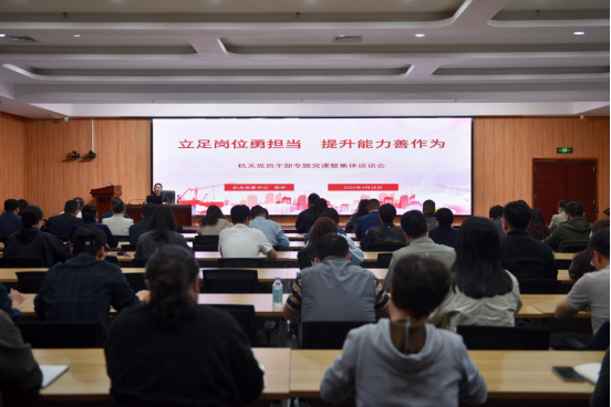 为深入开展树立和践行正确政绩观学习教育,进一步加强机关作风建设,推动机关党建高质量发展,4月28日下午,机关党委在图书馆南楼一楼东报告厅开展机关党员干部专题党课暨集体廉政谈话。机关各部门中层副职、科级干部共100余人参加会议。