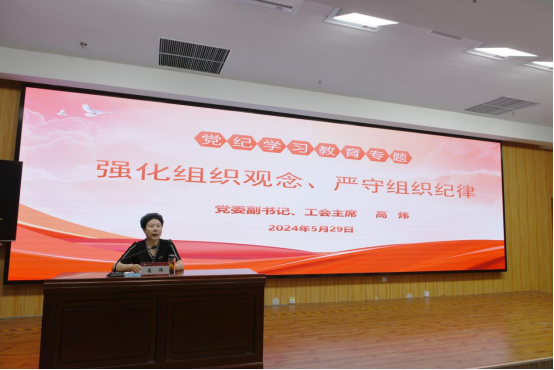 5月29日上午,党委副书记、工会主席高炜以“强化组织观念、严守组织纪律”为主题讲授党纪学习教育专题党课。全校二级党组织书记、二级学院院长、机关部门党支部书记、党纪学习教育专班工作组成员,以及党委组织部、党委统战部、党委巡察办、党委学工部、党委武装部、工会、团委、机关党委、美术学院、音乐学院等分管及联系单位所有处级干部、相关学生社团负责人参会,会议由副校长韩辉主持。