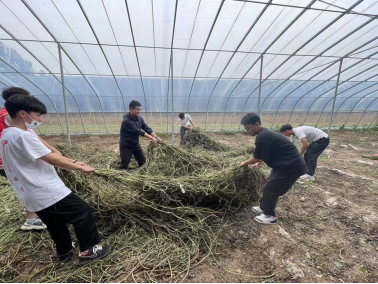 随后分成两队分别赶赴李家村大棚、田间地头进行劳动实践体验活动。一组同学到温室大棚帮瓜农处理瓜秧,另一组同学则到田间地头帮老乡采摘金银花。同学们亲历劳动,体验劳动的艰辛,感受劳动之美与伟大,感悟美好幸福生活来之不易,珍惜当下,在心中播种梦想,并为之努力奋斗,真正让劳动教育走深走实。