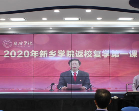 5月13日8时30分,第一批返校的学生已经坐在经过仔细消杀的教室,按照事先布置好的、不少于1米的座位间隔学习《省教育厅厅长郑邦山寄语广大师生》视频和《河南省开学第一课》视频;暂未返校的15000余名当时无课同学通过超星学习通同步进行了在线学习,全体师生以视频直播方式同上“返校复学第一课”。
