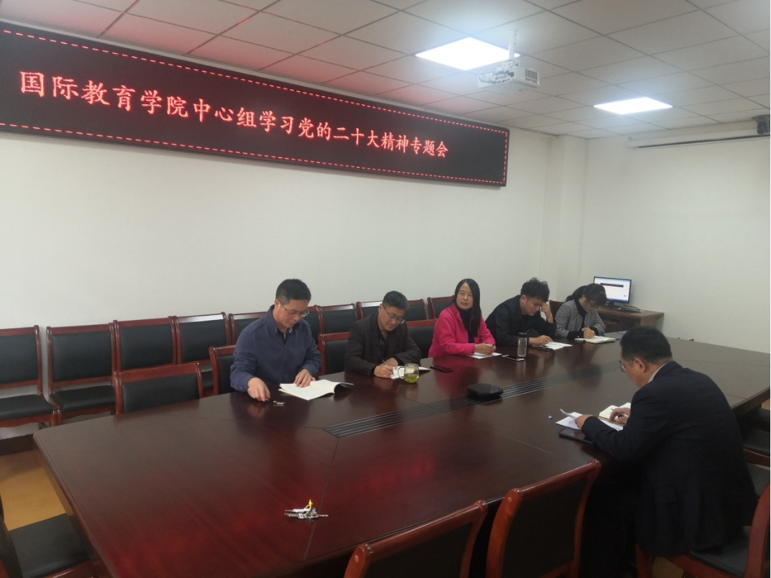 11月1日下午,我院在A04-104会议室召开党总支理论学习中心组学习宣传贯彻党的二十大精神专题研讨会,深入学习宣传贯彻党的二十大和二十届一中全会精神,全面贯彻习近平新时代中国特色社会主义思想,系统把握党的二十大提出的新思想、新战略、新要求。国际教育学院党总支理论学习中心组全体成员参加会议。会议由学院党委书记郭兵主持。