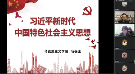 为了深入学习领会习近平新时代中国特色社会主义思想的核心要义和理论精髓,明确“两个确立”的决定性意义,进一步增强师生用党的创新理论武装头脑、指导实践、推动工作的政治自觉、思想自觉和行动自觉,商学院党委根据近期学习宣传贯彻党的二十大精神系列活动安排,11月8日晚,特邀马克思主义学院马保玉博士以腾讯会议在线形式作习近平新时代中国特色社会主义思想专题宣讲报告。报告会由商学院党委书记周珍主持,副书记杨建宇、各党支部书记及第三十期入党积极分子党课培训班学员参加。