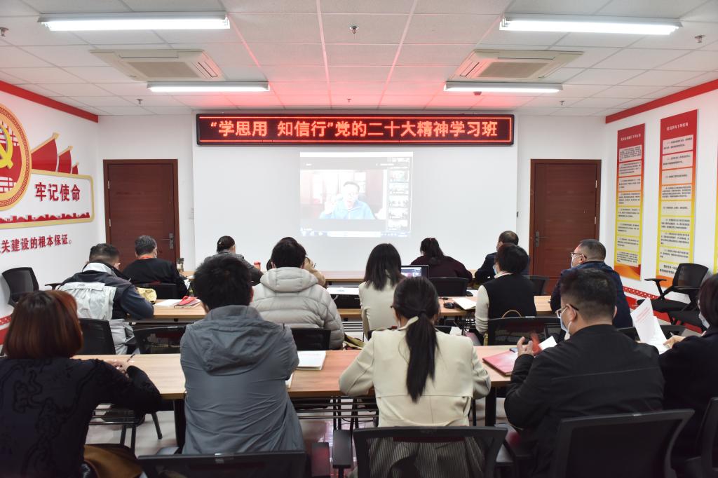 本次辅导报告是机关党委“学思用,知信行”——党的二十大精神名家讲的第一讲。根据疫情防控要求,本次宣讲采取线上方式,机关党委安排各党支部组织集中收听收看。